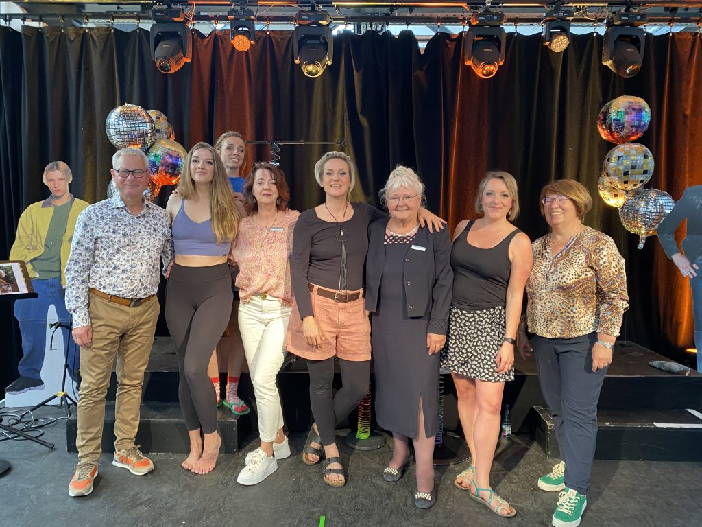 v.l.n.r.: Ralf Dorn (Geschäftsführer, l.), Andrea Beyes (4.v.l.), Christiana Goldhahn (Schatzmeisterin, 3.v.r.), Kirsten Strobel (Tickets und Abo-Betreuung; r.) gemeinsam mit den MEDLZ